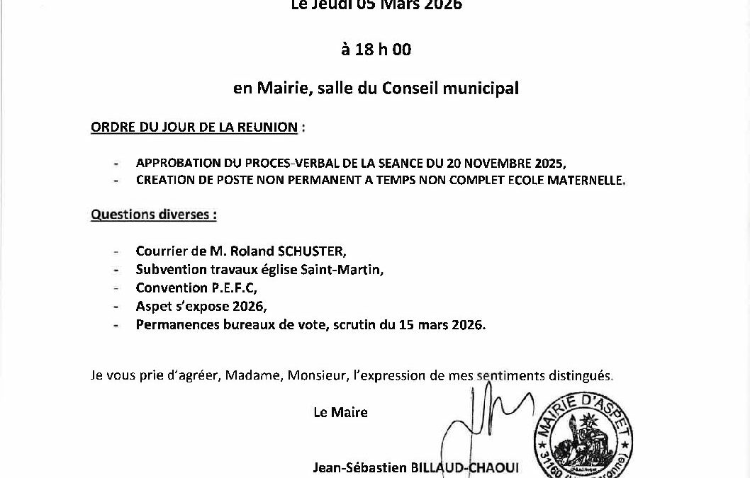 CONVOCATION conseil municipal du 05 Mars 2026