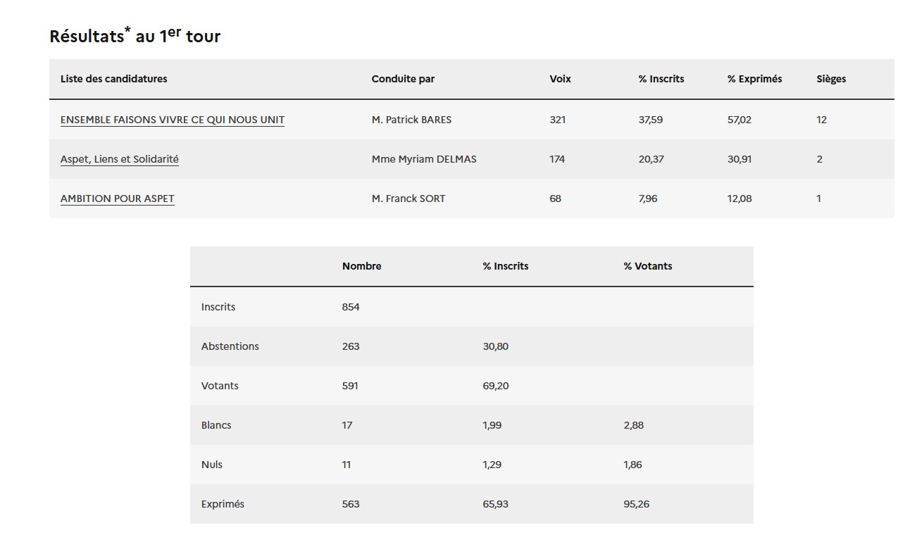 Résultats élections municipales