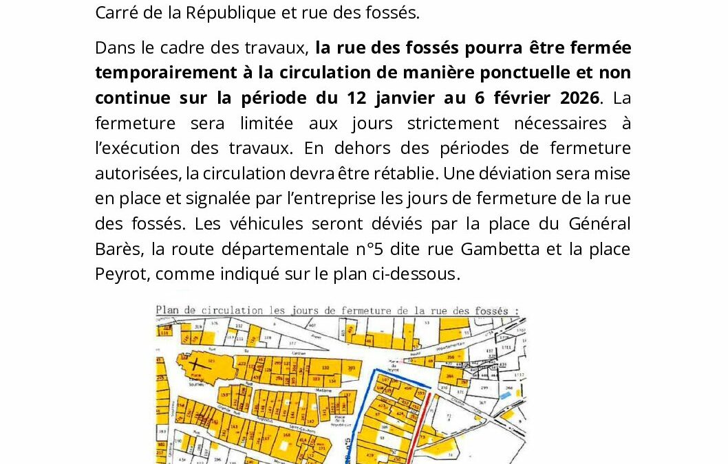 • Fermeture temporaire de la rue des fossés
